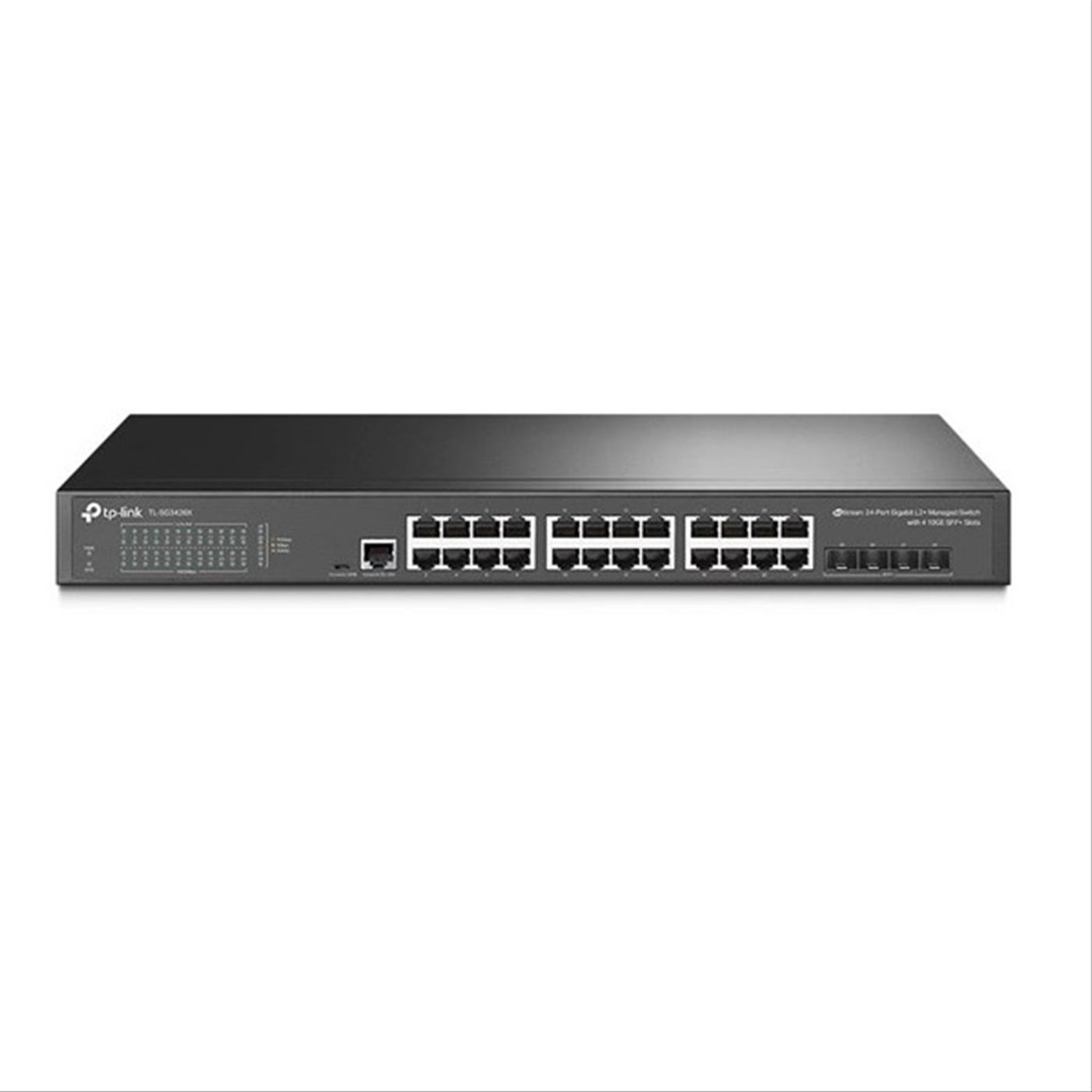 TP-LINK TL-SG3428X. Tipo de switch: Gerenciado, Camada de switch: L2+. Tipo de portas Ethernet RJ-45 de comutação básica: Gigabit Ethernet (10/100/1000), Quantidade de portas Ethernet RJ-45 de comutação básica: 24, Porta de console: RJ-45/micro-USB. Tabela de endereços MAC: 16.000 entradas, Capacidade de comutação: 128 Gbit/s. Padrões de rede: IEEE 802.11d, IEEE 802.1s, IEEE 802.1w. Rackmount